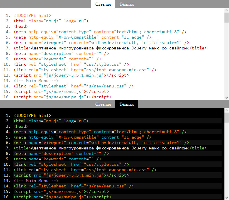 Сейчас я расскажу как в скрипте Google Code Prettify сделать переключатель между двумя темами.