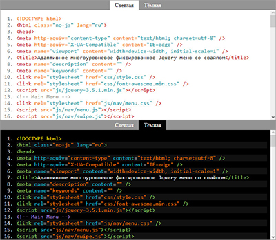 У посетителей сайта разные вкусы и разное зрение, а также в разное время суток и освещении код на сайте смотрится недостаточно контрастно и плохо читаем. Для удобства чтения кода можно сделать переключатель темы оформления.