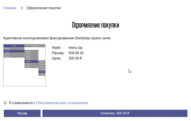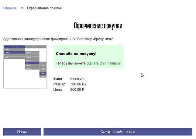 После оплаты вас автоматически перенаправит обратно на страницу оформления покупки, на которой появится кнопка "Скачать файл товара".