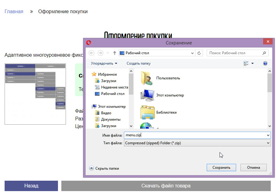 Теперь вы нажимаете кнопку "Скачать файл товара" и выбираете место на компьютере, куда вы собираетесь сохранить файл товара.