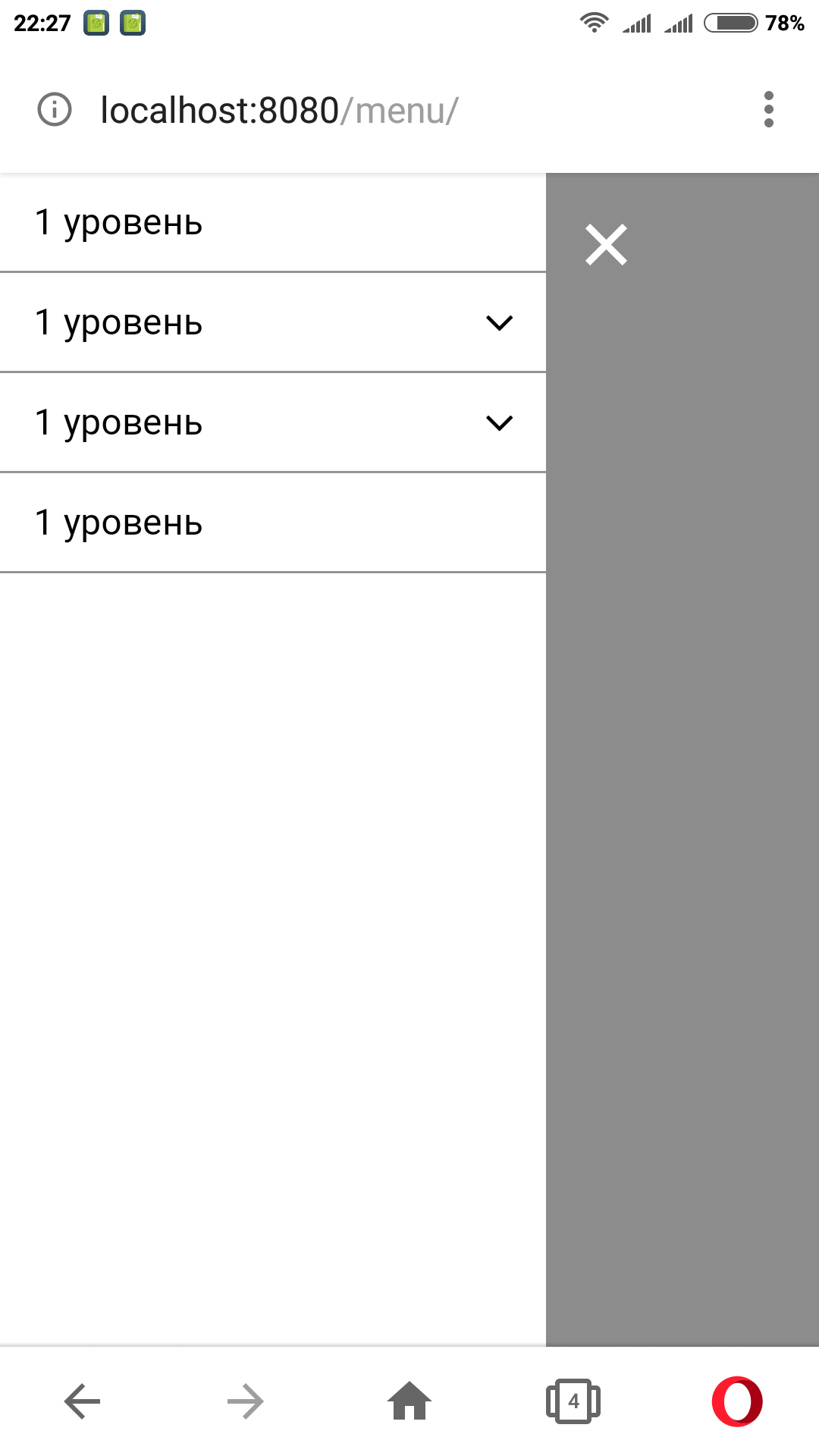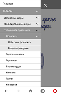 Меню на смартфоне с разрешением экрана 1080x1920 с разрешением экрана в браузере 360x516