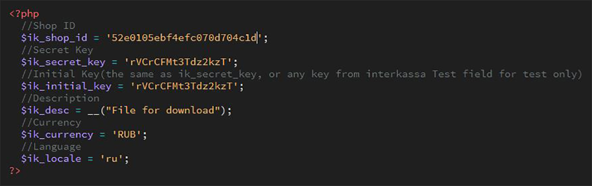4. Редактируем файл https://ваш домен.ру/sellfileeasy/interkassa/config.php.