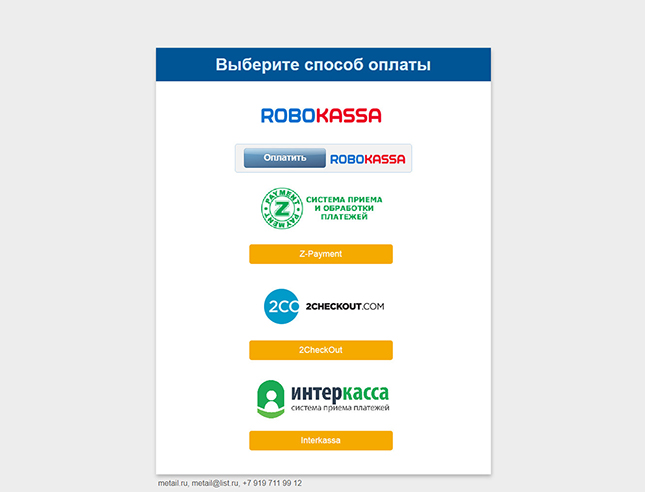 2. Вписываем свой Email, нажимаем Оформить заказ и попадаем на страницу Выберите способ оплаты.