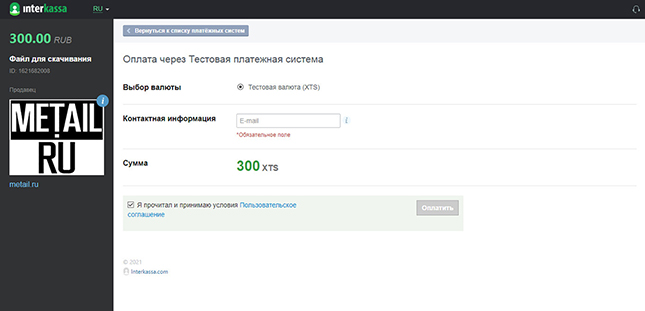 Продажа цифрового товара с помощью скрипта Sell File Easy в тестовом режиме настроена. Осталось подать заявку на активацию магазина в Interkassa и настроить необходимые способы оплаты.