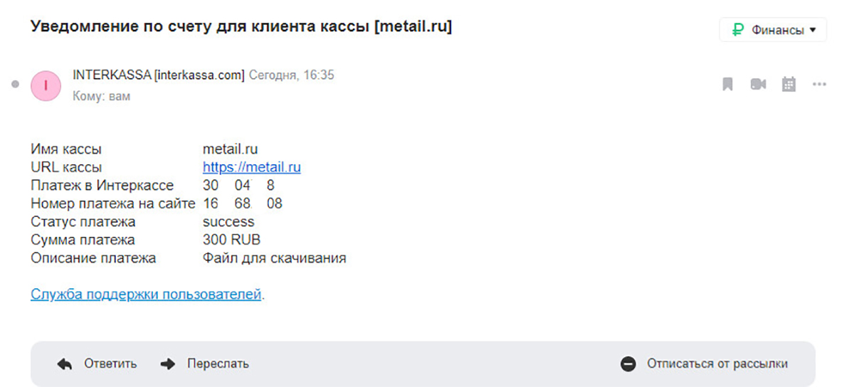 5. Проверяем свой Email и видим 2 письма: уведомление от Interkassa и письмо с сайта со ссылкой на закачку. Скачиваем купленный товар.
