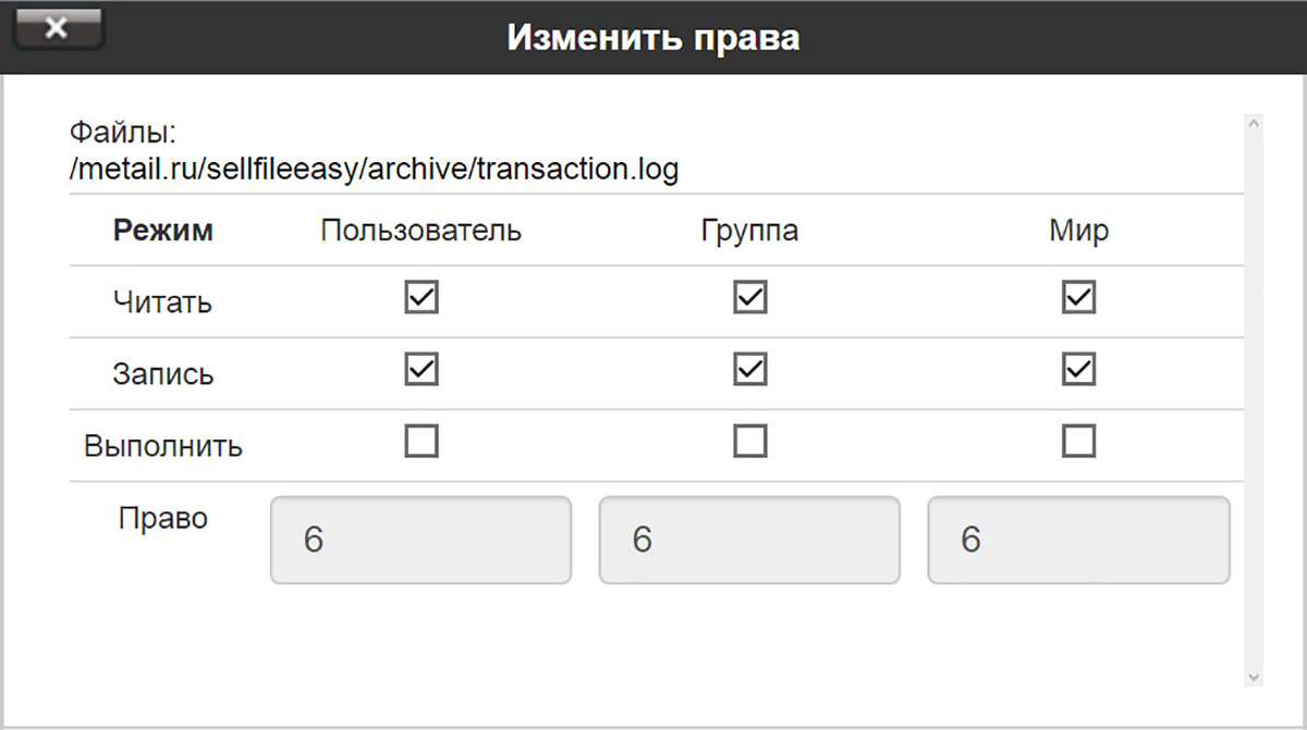 6. Дайте права 666 файлу