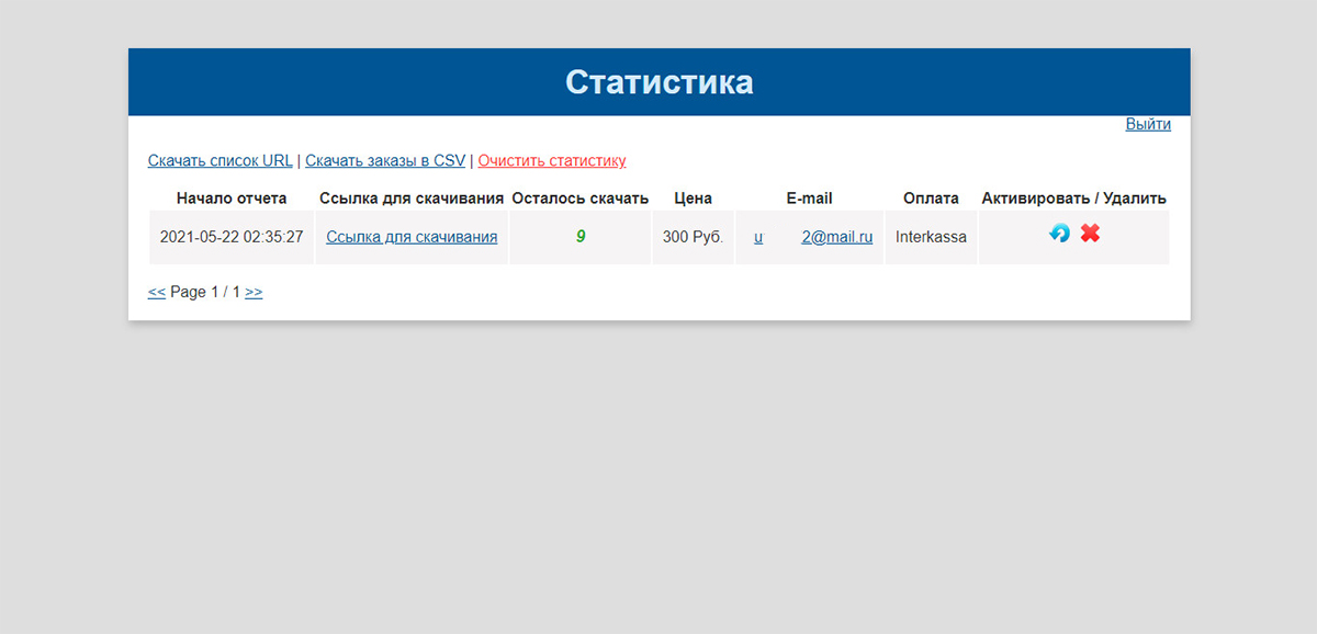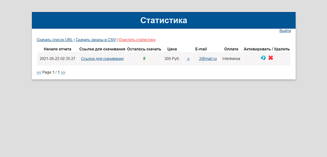 6. Проверяем страницу статистики https://ваш домен.ру/sellfileeasy/stat.php.