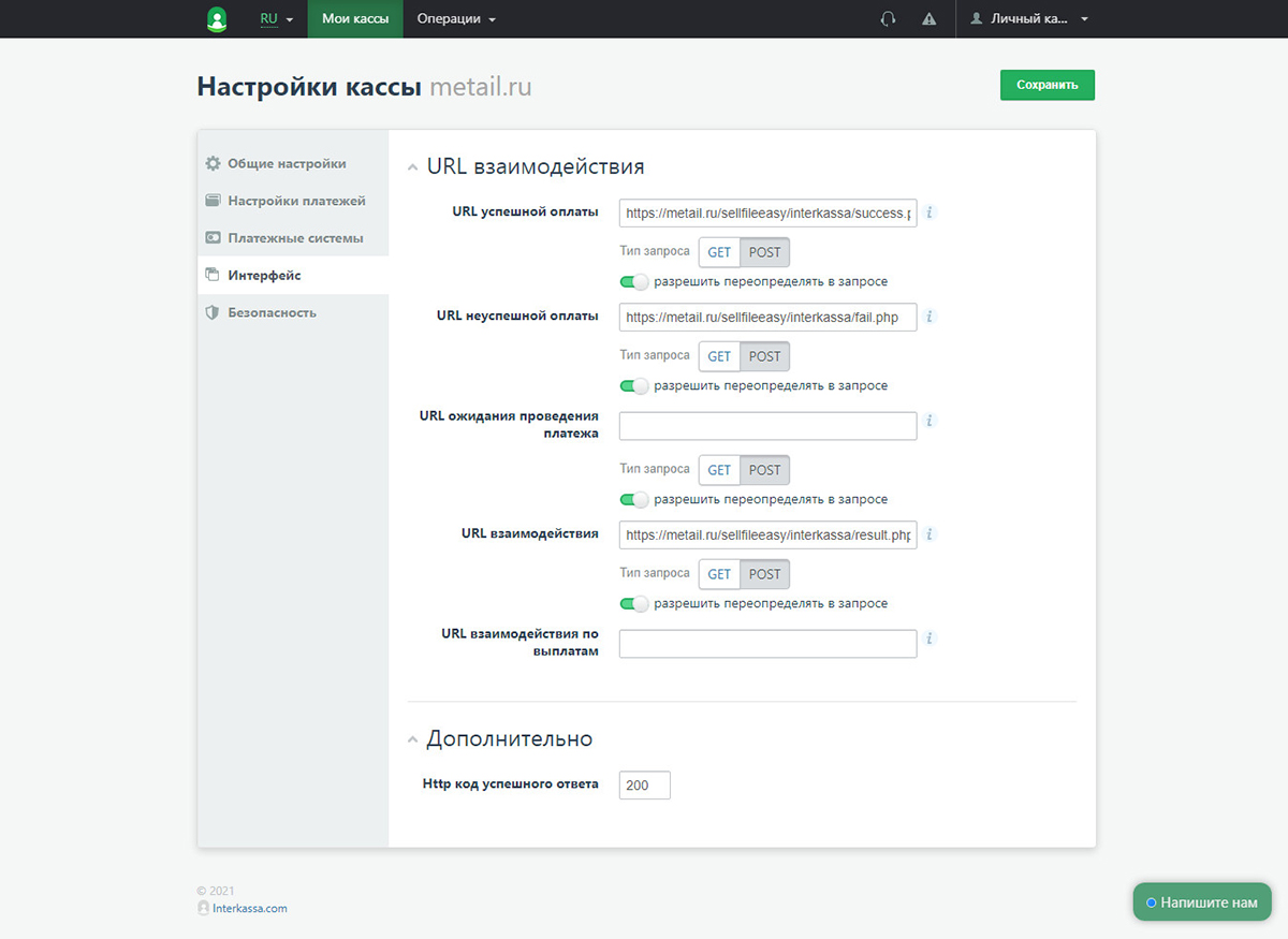 Настройка Интеркассы